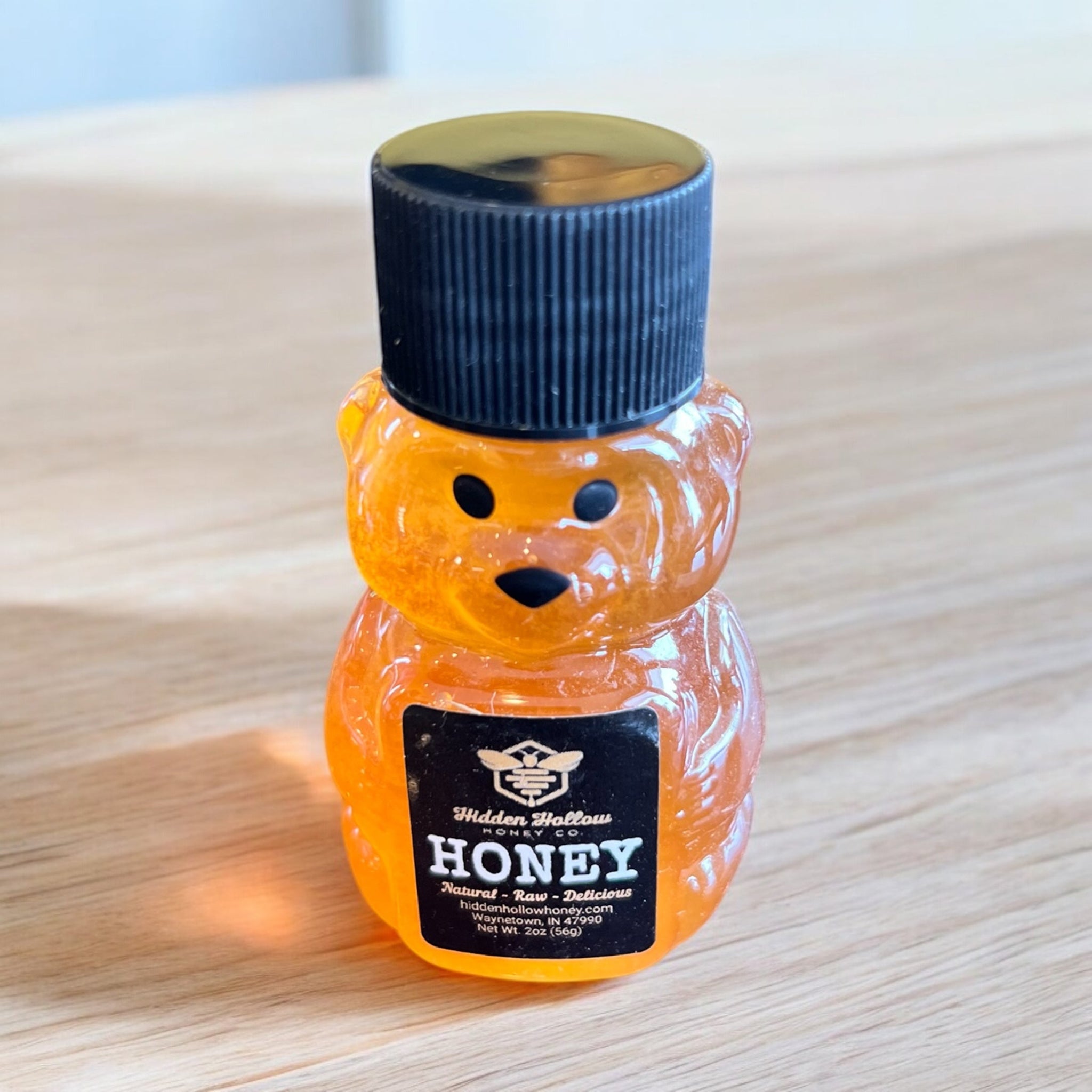 2 ounces of local raw honey in a cute little baby bear! Perfect for travel, gifts, wedding favors, etc.